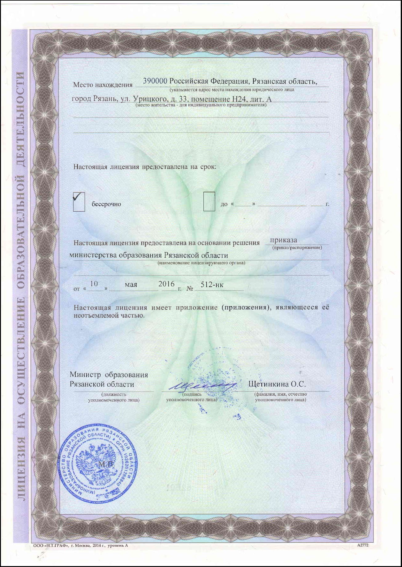 Адрес главного офиса: г. Рязань, пр-д Машиностроителей, д. 11/9
